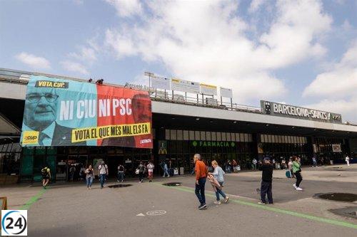 La CUP llama a no votar a "CiU ni PSC" en pancarta de estación Sants.