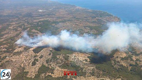Tres urbanizaciones y casas confinadas por incendio en El Perelló, Tarragona.