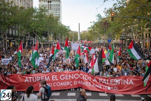 Multitudes pro-palestinas inundan las calles de Barcelona, 10.000 según organizaciones, la policía local estima 2.200.