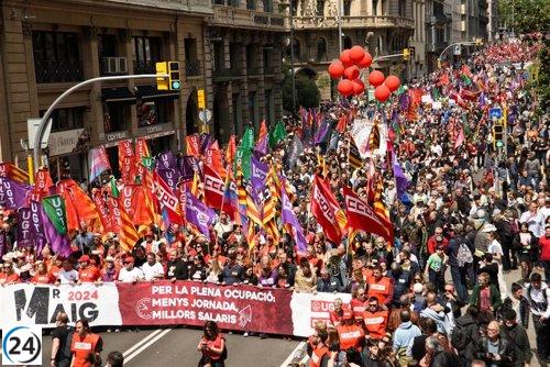 Sindicalistas catalanes marcharán el 1 de mayo por jornadas laborales más cortas y en rechazo a Trump.